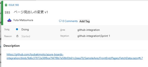 ※前回 tsubalog.hatenablog.com コミットのリンク 統合した Azure Boards と GitHub の連携として、GitHub で行ったコミットを Azure Boards のアイテムにリンクしてみます。 ドキュメントはこちら。 learn.microsoft.com learn.microsoft.com 作業内容とな…